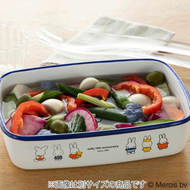 保存容器 ミッフィー70周年 浅型 角容器 Lサイズ 1.6L ( miffy 富士ホーロー 密閉 琺瑯 ホーロー オーブン対応 ガス対応 琺瑯容器 角型 ほうろう 直火 ストッカー 食品保存 浅型角容器 蓋付き おしゃれ かわいい 1600ml )