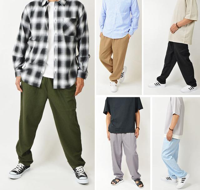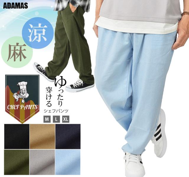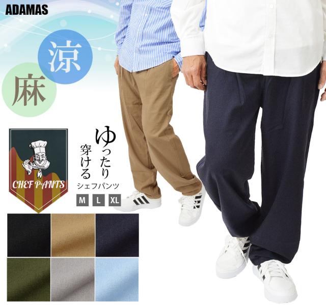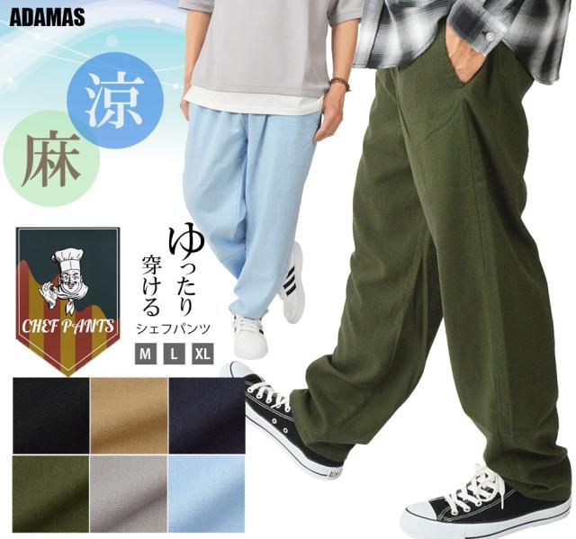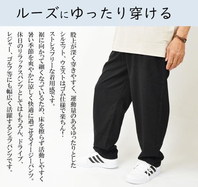 シェフパンツ メンズ イージーパンツ ゆったり ウエストゴム ワイドパンツ リラックスパンツ ゴルフパンツ テーパードパンツ ワークパンツ 春 夏 秋 涼しい 黒 ベージュ カーキ ポリエステル レーヨン 麻 綿 新作
