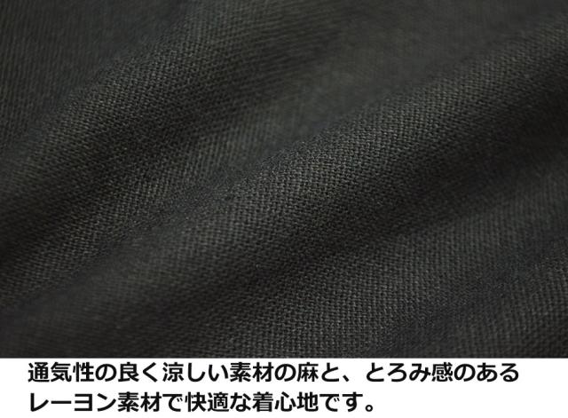 ■通気性に優れ、吸湿性、速乾性が高いので汗ばむ季節も快適に過ごせます。レーヨンとリネン(麻)の混紡効果により、ひんやり冷感も持ち合わせています。