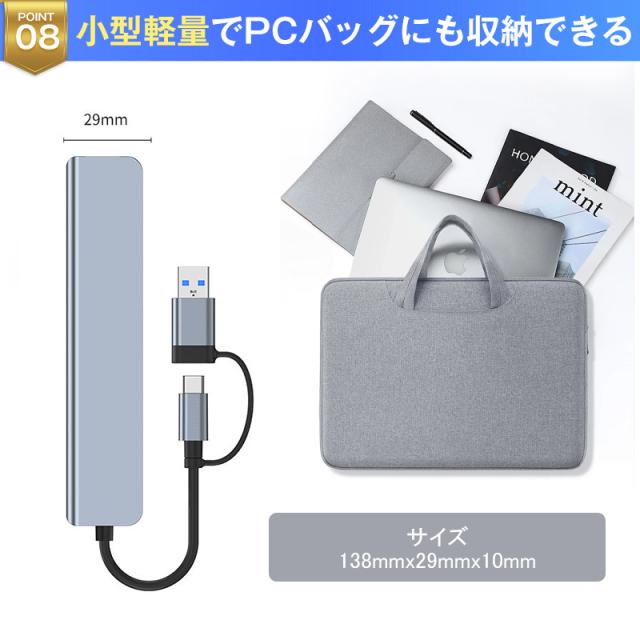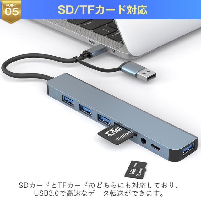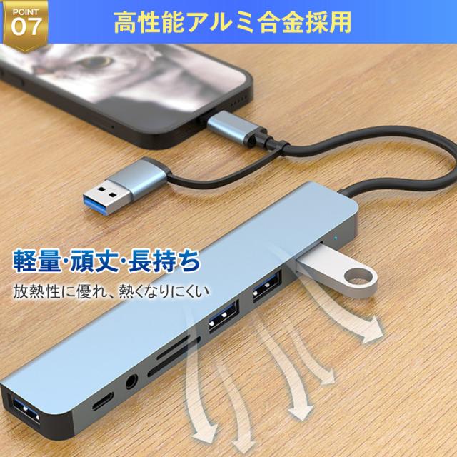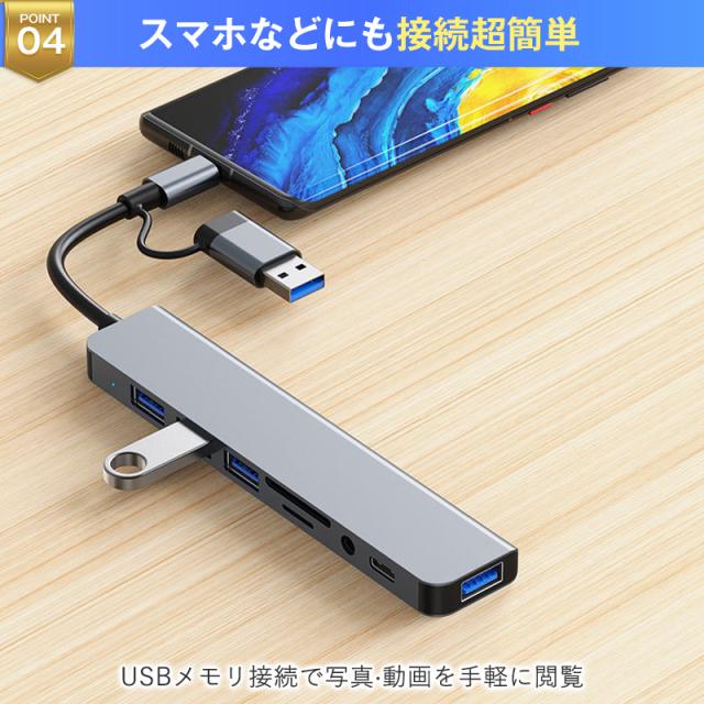 即納 USBハブ Type-Cハブ ドッキングステーション 8ポート 8in1 変換アダプター PD急速充電 SD/TFカードリーダー USB3.0対応 高速データ転送 一台多役