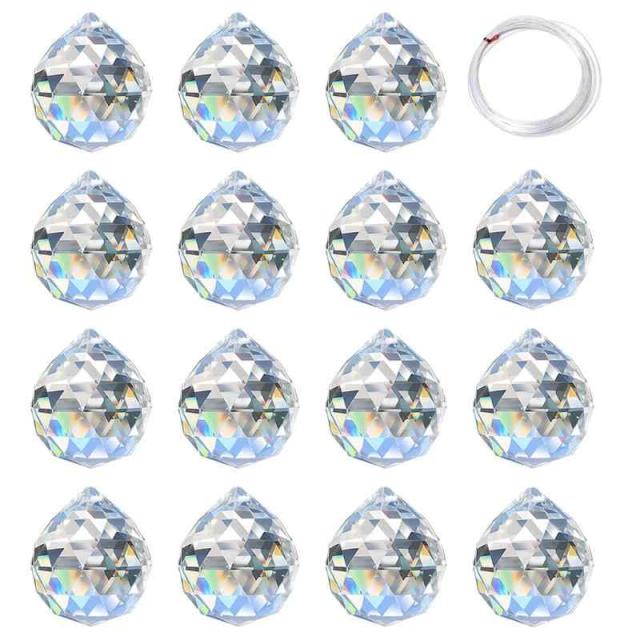 MerryNine混合カラフルクリスタルボールプリズムドリル穴付きサンキャッチャーレインボーペンダントメーカー、窓用クリスタルプリズム、風水用、ギフト用(プリズムボール-30mmカラフル) (透明白, 30mm)