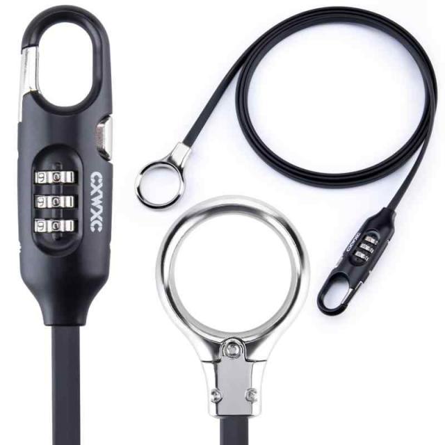 CXWXC 自転車 ワイヤーロック 軽量 コンパクト 3桁 ダイヤル 長さ1.8m 地球ロック 盗難防止 (PL-3001) (ブラック)