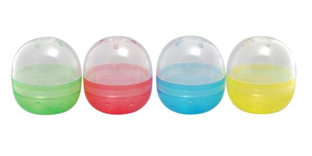 48mm空カプセル4色アソート(赤、青、緑、黄色)10個入りの小ロット販売です。透明と4色アソートの新品の空カプセル、カプセルのみの販売です。