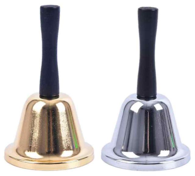 heizi ハンドベル 卓上ベル 2個セット 祭り用品 くじ引き ガラポン 抽選 あたり 鐘 呼び出しベル 呼び鈴 お店 ベル (ゴールド&シルバー 7.5cm x 13cm)
