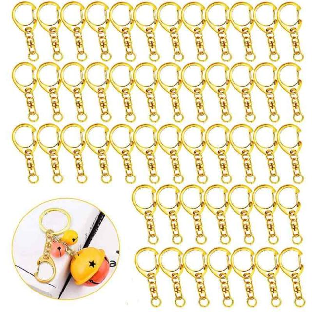 キーホルダー 金具 キーホルダーパーツ 50個入り 全長4.7CM ナスカン レジン パーツ キーホルダーパーツ 回転フック 丸カン 付き ハンドメイド キーリング アクセサリー DIY 手芸用品 (ゴールド)