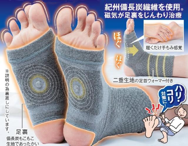 メディカル備長炭 足裏サポーター<家庭用永久磁石磁気治療器>【左右兼用】【男女兼用】 [サポーター 足裏 磁気 磁石 着圧 血行 備長炭 温め 手もみ 就寝時 昼間 医療機器]