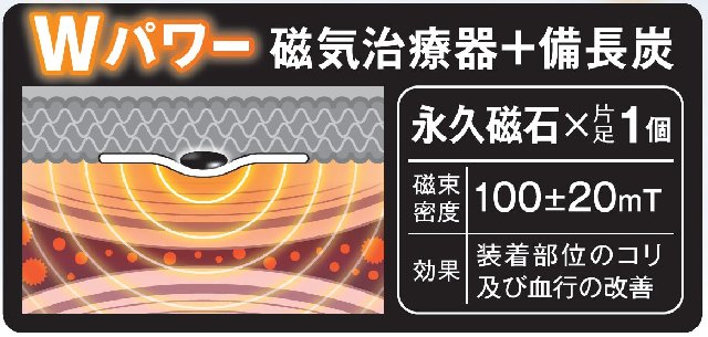 | 素材 | 綿、レーヨン、ナイロン、ポリウレタン、備長炭 永久磁石×1個(磁束密度100±20mT ) |
