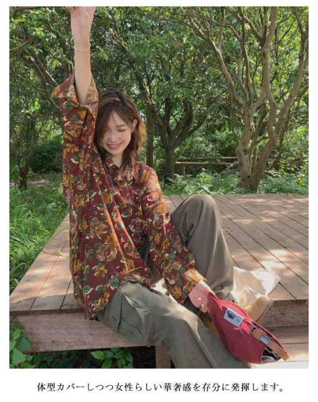 花柄 シフォンブラウス 長袖 きれいめ ブラウス オフィス アロハシャツ レディース トップス シャツ レディース 柄 華やか 着痩せ カジュアル エスニック オフィスカジュアル シワになりにくい 30代 40代 50代 60代 レディースファッション 大きいサイズ 送料無料