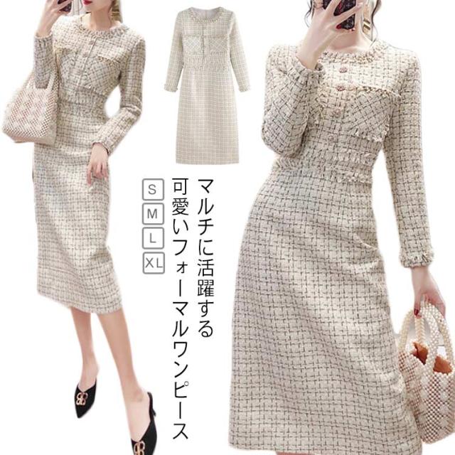母親 ツイード ワンピース スーツ ママスーツ 長袖 春 卒業式 秋 スーツ ツイード きれいめ ロング丈 ラウンドネック ひざ下丈 ママ 卒園式 スーツ ママ フォーマルスーツ 入園 ひざ下 スーツ 膝下 謝恩会 Aライン 上品 大きいサイズ 20代 30代 40代 通勤 ビジネス 送料無料