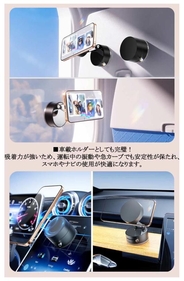 スマホスタンド 車載ホルダー スマホホルダー 2個セット マグネット式 magsafe 車載ホルダー 真空 吸盤 ダッシュボード 卓上 折りたたみ 携帯 スタンド 置くだけ スマホ タブレット iPhone 車載 撮影 吸着 抜群な安定感 スマホ/タブレット全機種対応 全車種対応