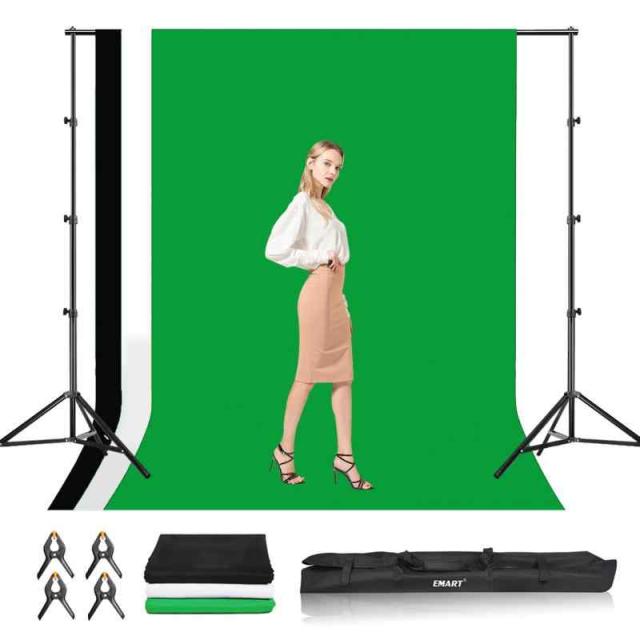 EMART 背景スタンド 背景スタンドセット 背景布白 黒 緑 背景180x280cm 撮影スタンド グリーンバックスタンド 背景布/背景紙に適用 組み立ては簡単 安定性がよい 写真スタジオ、ビデオ通信、クロマキー合成、誕生日、パーティーなどに適用 (強力