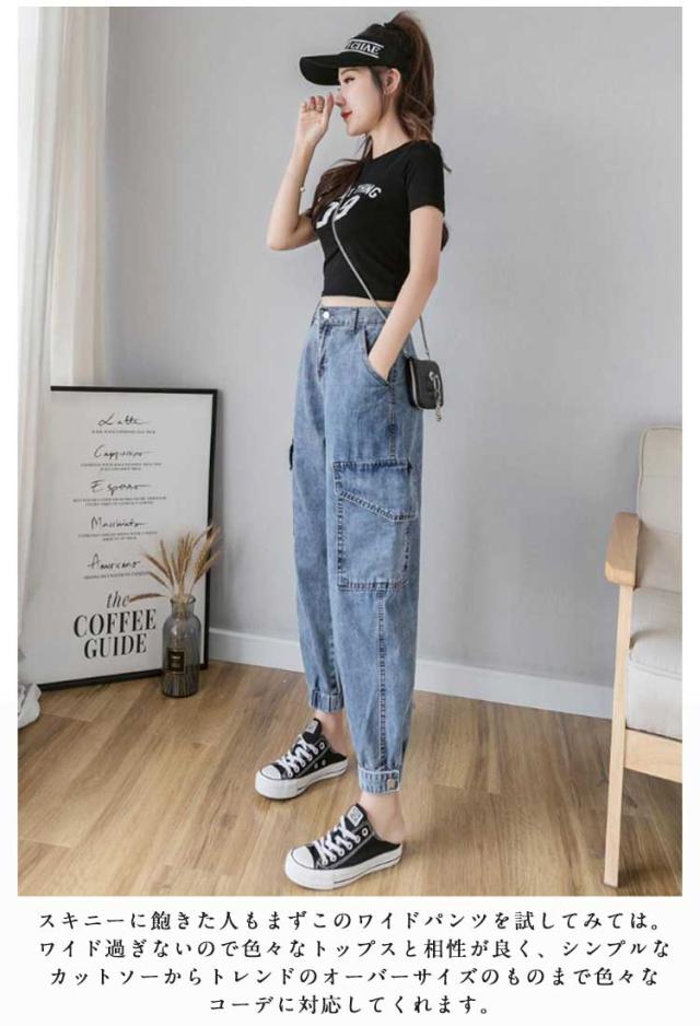 デニム カーゴパンツ ワイドパンツ レディース ロングパンツ ダンス衣装 多ポケット ガウチョパンツ ハイウエスト ゆったり 大きいサイズ かっこいい ヒップホップ レディース ダンスパンツ 普段着 カジュアル 通勤 体型カバー S M L XL 2XL 送料無料