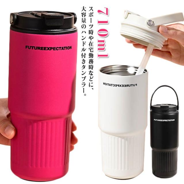 ステンレス ボトル ストロー ハンドル付き 710ml 直飲み 保冷 保温 ステンレスボトル マグボトル 魔法瓶 洗いやすい 広口 持ちやすい 携帯 アウトドア キャンプ
