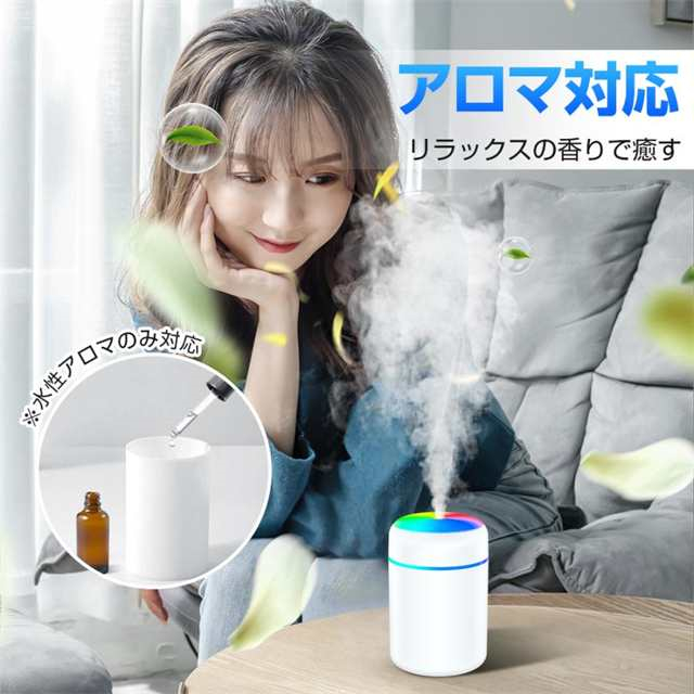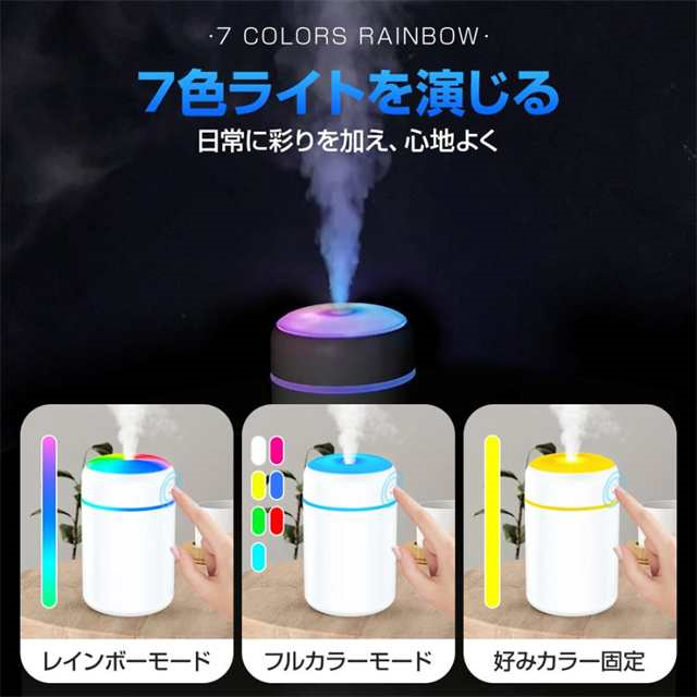 冬新作 送料無料 加湿器 卓上加湿器 超音波式 小型 おしゃれ マイナスイオン 七色LED 静音 保湿 車載 USB給電式 除菌機能付き 空気清浄機 花粉対策 次亜塩素酸水対応 アロマ対応 空焚き防止 車用 寝室 家庭 子供部屋 お手入れ簡単