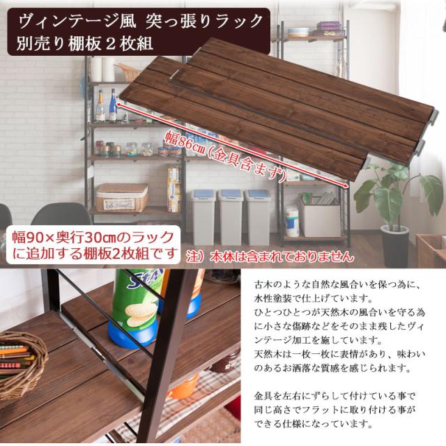 ヴィンテージ風 突っ張りオープンラック用 追加棚板 2枚組 幅90 奥行30 【送料無料】 オープンシェルフ 頑丈 日本製 天井 突っ張り式 おしゃれ インテリア 飾り棚 一人暮らし 壁面ラック