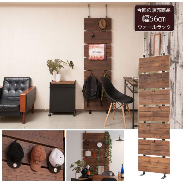 古木感ある天然杉板のヴィンテージ感 突っ張り ウォールラック 幅56 【送料無料】 賃貸 おしゃれ インテリア 壁面収納 日本製 ラダーラック 木製 スリム 玄関
