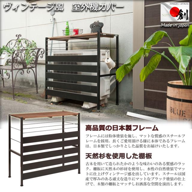 おしゃれに隠す ヴィンテージ風 室外機カバー 【送料無料】 日本製 アイアン おすすめ 植木鉢 木製 天板 棚付き エクステリア