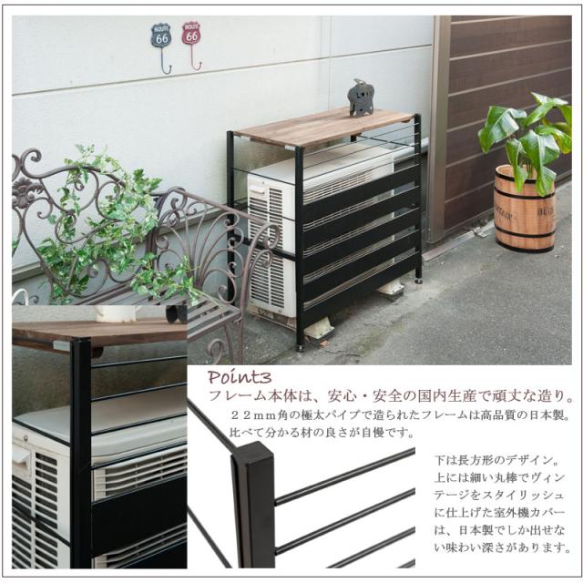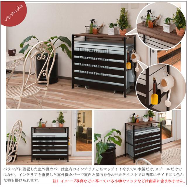 【キーワード】 日本製 エアコン 室外機 目隠し おしゃれ インテリア ビンテージ 植木鉢 植物 棚付き 木製 天板 アイアン スチール かっこいい おすすめ