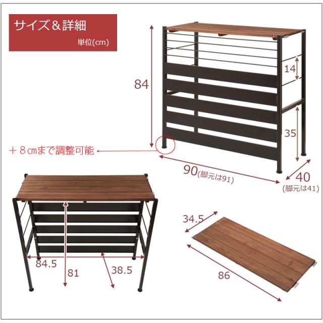 ■商品サイズ/本体:(約)幅90(アジャスター含む91)×奥行40(アジャスター含む41)×高さ84(アジャスター使用時92)cm