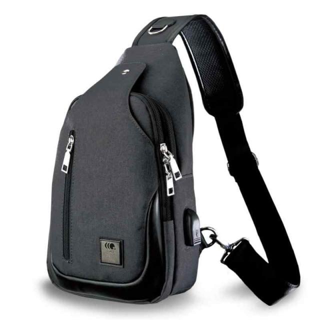 [C two Q] ボディバッグ ショルダーバッグ ワンショルダー 斜め掛け ボディーバッグ 大容量 軽量 防水 撥水 肩掛けバッグ 斜めがけ バッグ 人気 通勤 旅行 スポーツ メンズ (01.ブラック(USB有り))