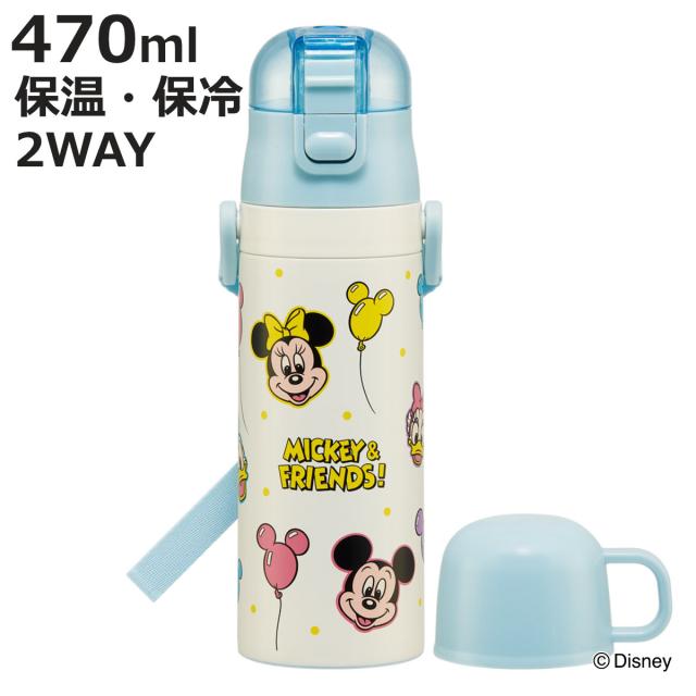 水筒 470ml 超軽量2WAYステンレスボトル ミッキー&フレンズ風船 ( ミッキー 保冷 保温 直飲み コップ付き ワンプッシュ マグボトル コップ飲み 2way 子供用 すいとう ボトル キッズ ワンタッチ ステンレス 超軽量 軽量 )