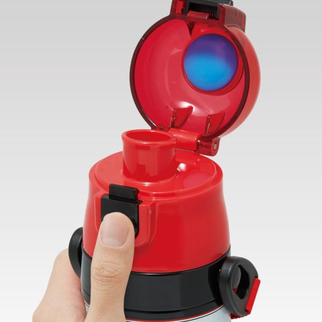 水筒の蓋はボタンを押すだけで開けることができるワンタッチ式です。飲み終わったら蓋をカチッと閉めるだけなので、小さなお子様でも簡単に開閉できます。