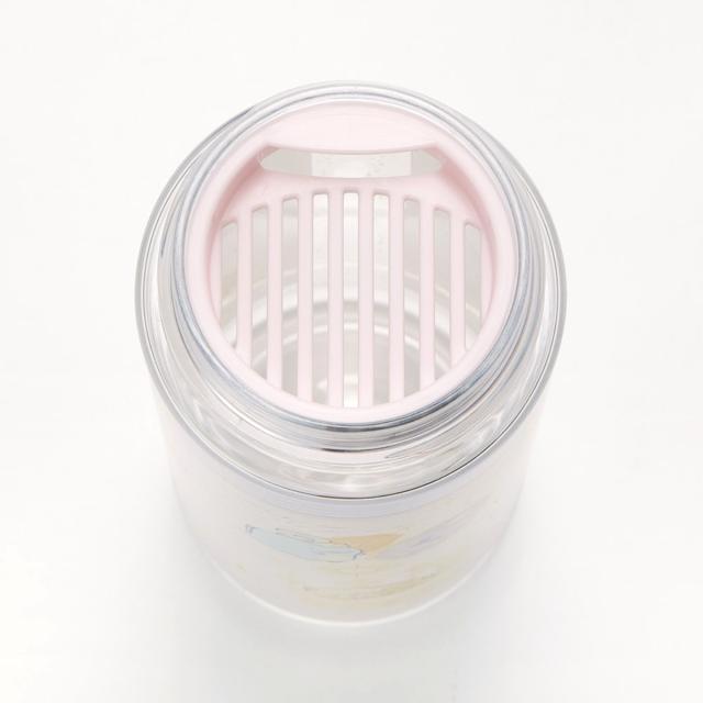 飲み口蓋は果肉や茶葉、氷を止めるこし器が付いているので、飲み物が飲みやすいです。本体にフルーツなどを入れてフレーバーウォーターも楽しめます。