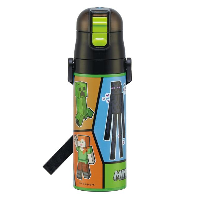 水筒 470ml 超軽量ダイレクトボトル マインクラフト25 ( マインクラフト 保冷 軽量 直飲み ワンタッチ ステンレスボトル 子供用水筒 子供 直のみ 軽い 超軽量 ワンプッシュ ダイレクトボトル ダイレクト ボトル ステンレス )
