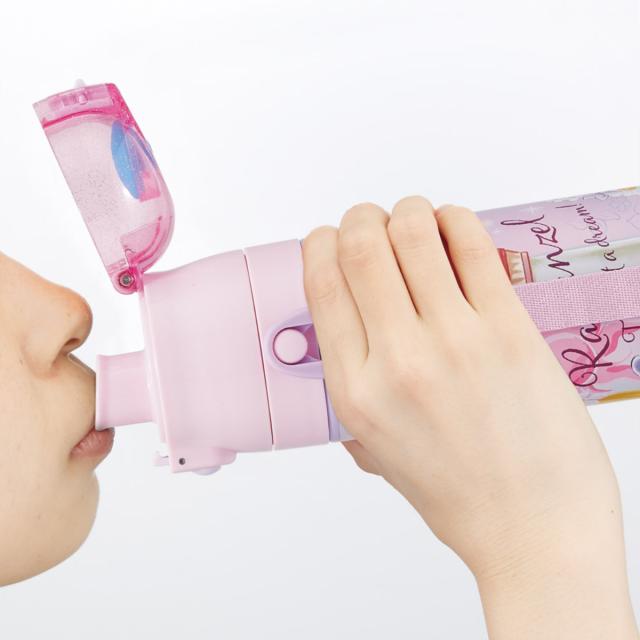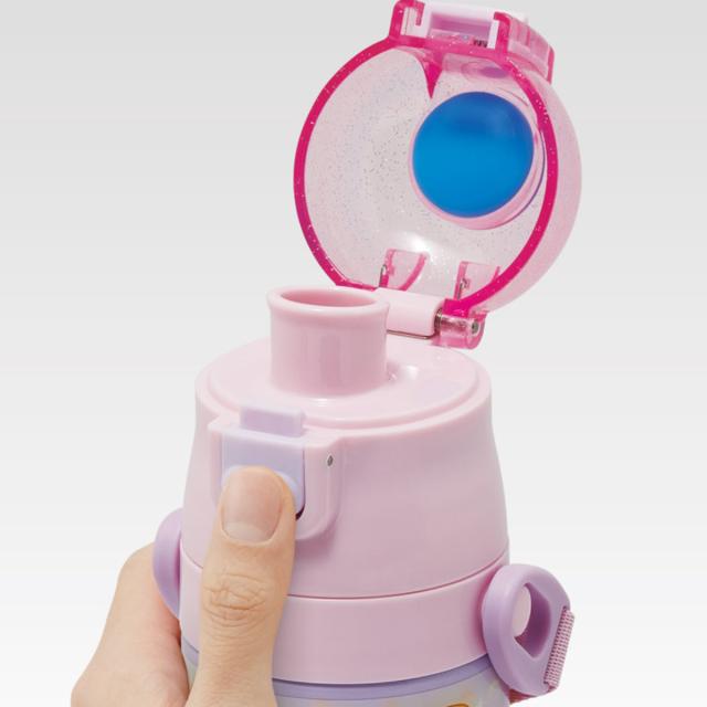 水筒の蓋はボタンを押すだけで開けることができるワンタッチ式です。飲み終わったら蓋をカチッと閉めるだけなので、小さなお子様でも簡単に開閉できます。
