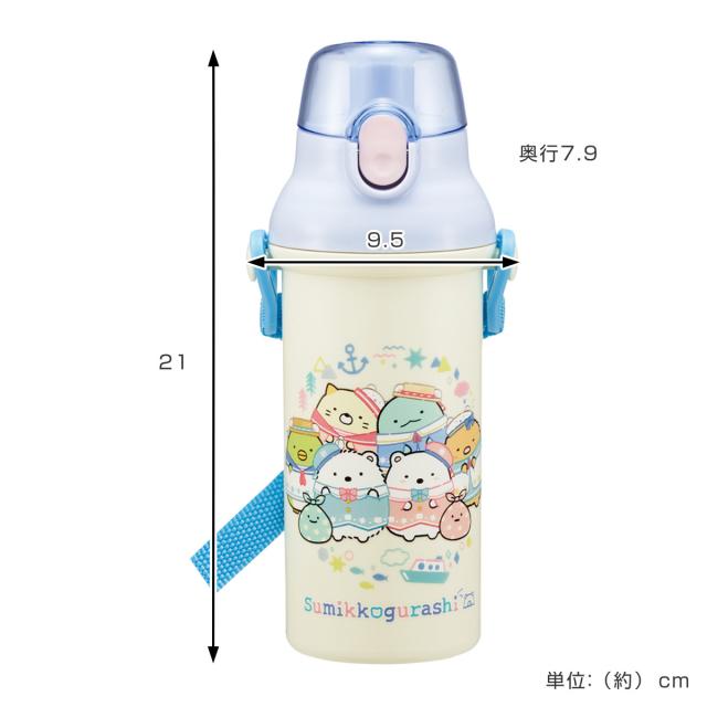 水筒 480ml 抗菌直飲プラボトル すみっコぐらししろくまふるさと ( すみっコぐらし 子供用 抗菌 プラスチック製 ダイレクトボトル 直飲み ワンタッチ 日本製 抗菌加工 AG 銀 ショルダーベルト付き 広口 軽量 ボトル ワンプッシュ )