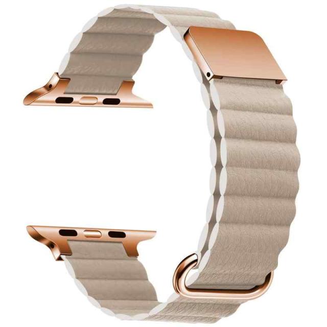 GAGULA Apple Watch バンド 革レザー アップルウォッチ バンド 磁吸引式ループ 自由調整 マグネット 装着簡単 着脱簡単 Series Ultra/Ultra 2/11/10/9/8/7/6/SE/5/4/3/2/1 49mm 46mm 45mm 44mm 42mm 41mm 40mm 38mm 全機種対応 (38/40/41/42mm(Series 11 10), ベージュ)