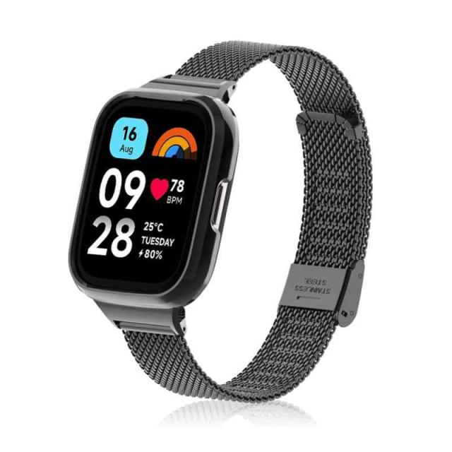 [HeeNia] Xiaomi Redmi Watch 3 Active 対応 バンド 金属ベルト ステンレス製 替えベルト 長さ調節可能 柔らしい 男女兼用Xiaomi Redmi Watch 3 Active 対応 交換バンド (ブラック)