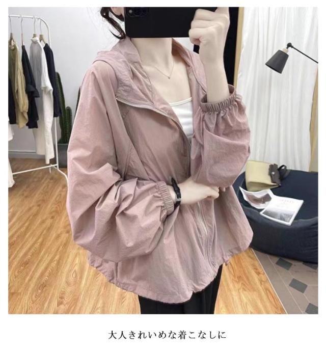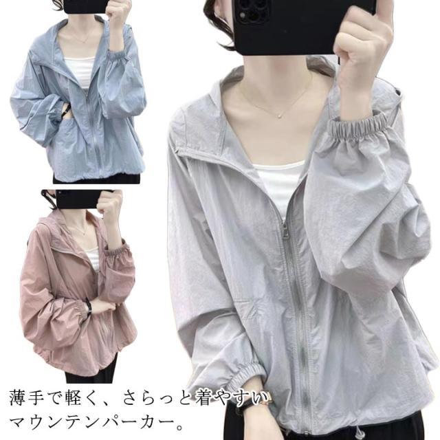 体型カバー マウンテンパーカー マウンテンパーカー レディース ブルゾン アウター ジャケット パーカー きれいめ ショート丈 ジップアップ uvカット uvパーカー おしゃれ 長袖 ゆったり 薄手 ボリューム袖 大人 防水 春夏 春 夏