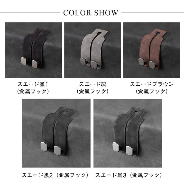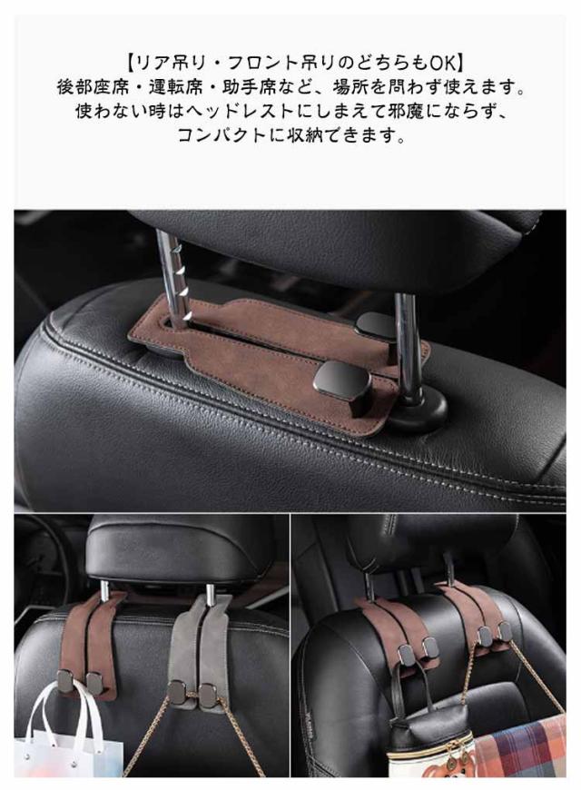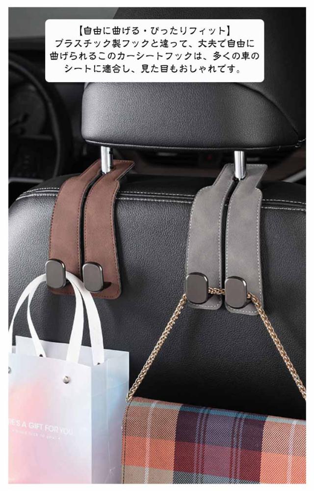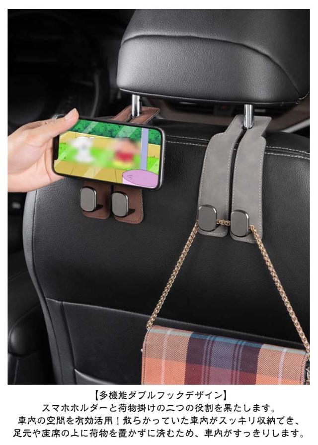 ヘッドレスト用 カーシートフック 2個セット 車フック 荷物かけ スマホホルダー おしゃれ 2連 車内 2in1 荷物フック ダブルフック 収納 耐荷重強い 運転席 助手席 スウェード調 PUレザー ラインストーン付き