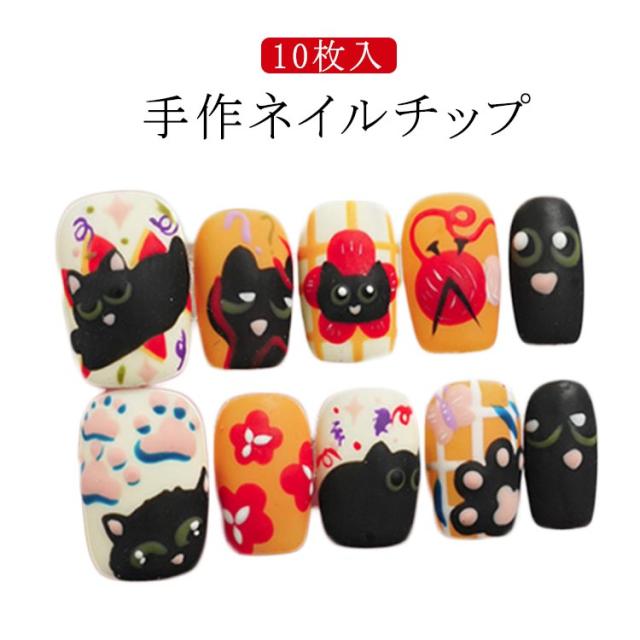 人気 春 猫 かわいい 【手作ネイルチップ】ネイルチップ 貼るだけネイル ネイル ショート 10枚入 ジェルネイル 短い 【手作ネイルチップ】ネイルチップ 手作 かわいい シンプル おしゃれ 貼るだけ簡単