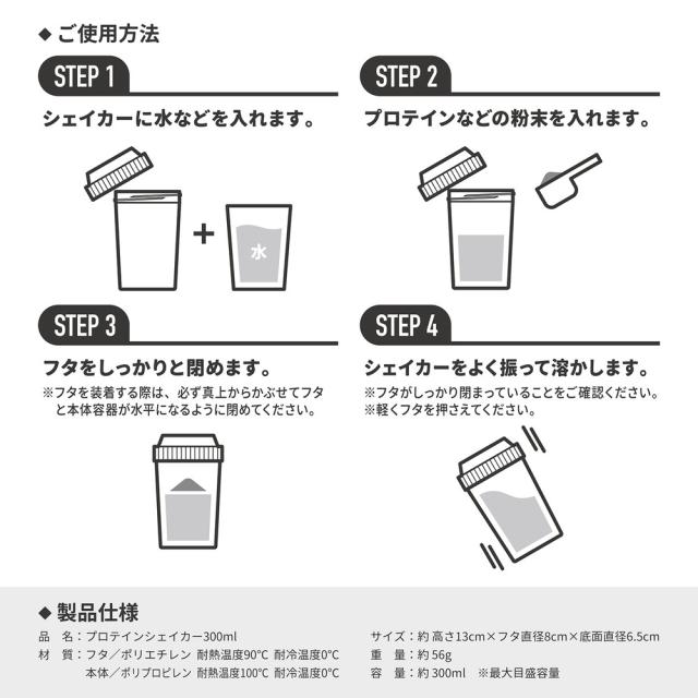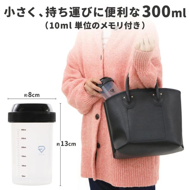 コンパクトで持ち運びやすい「プロテインシェイカー 300ml」です。