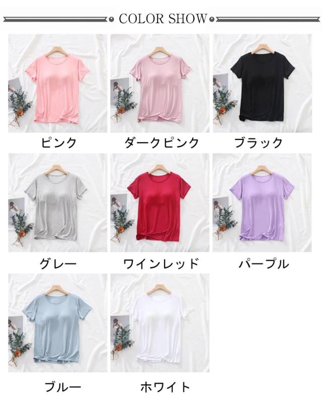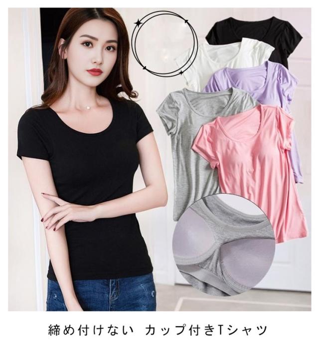 大きいサイズ 半袖インナー ブラトップ 通気性 パッド付 カップ付き Tシャツブラ トップス 無地 ストレッチ 下着 ブラトップ カップ付き 肌着 伸縮性 Tシャツ 締め付けない カットソー ルームウエア ジムウエア ヨガウエア 部屋着