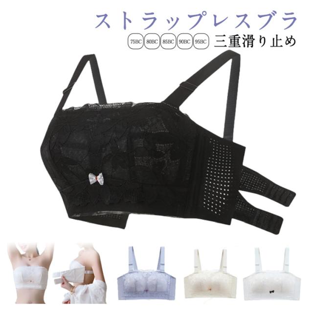 レディース ストラップレスブラ 三重滑り止め 女性 ブラジャー 肩紐なし チューブトップ 紐なしブラ ブラジャー 脇高 ブラ 盛りブラ 蒸れず 柔らかい 下着 高通気性 落ちない
