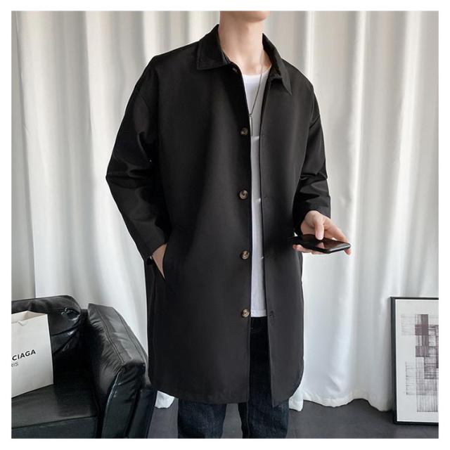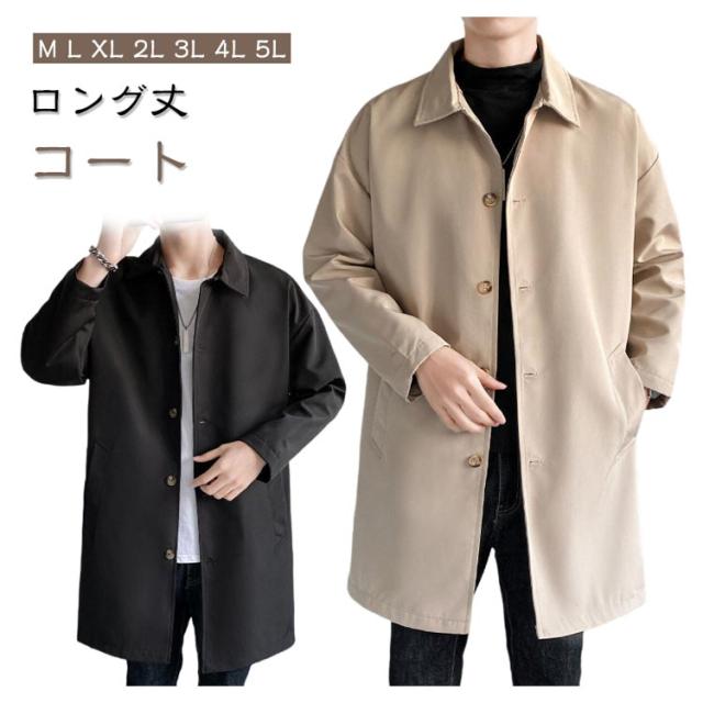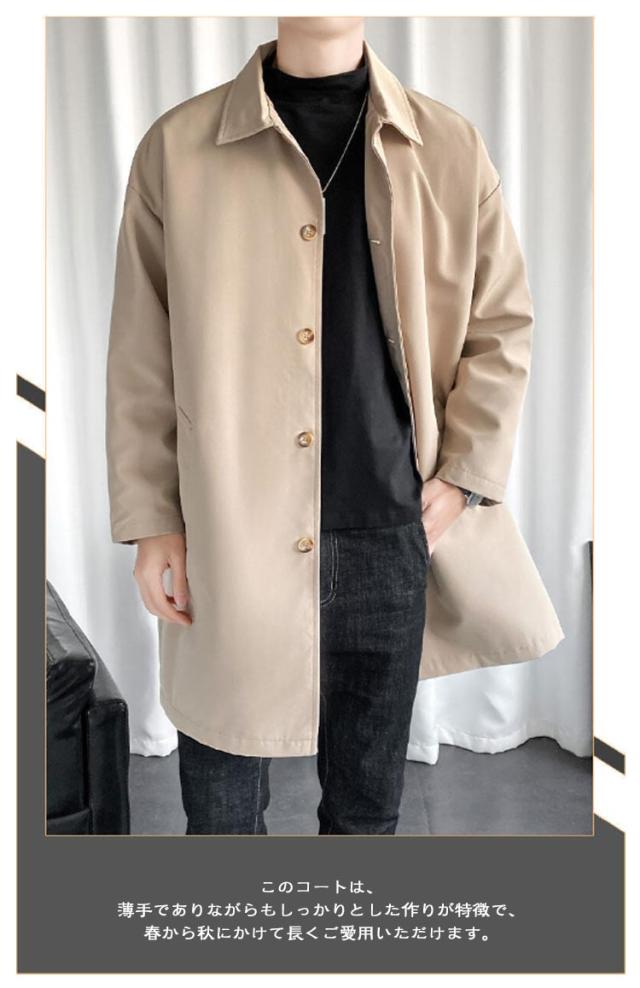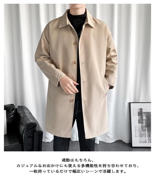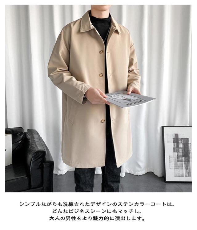 ステンカラーコート ビジネス スプリングコート コート アウター ロングコート 薄手 ロング丈 通勤 シンプル メンズ 大人 ビッグシルエット 春服 秋服 無地 ロングジャケット 紳士服 30代 40代 50代 春 カッコイイ スプリング