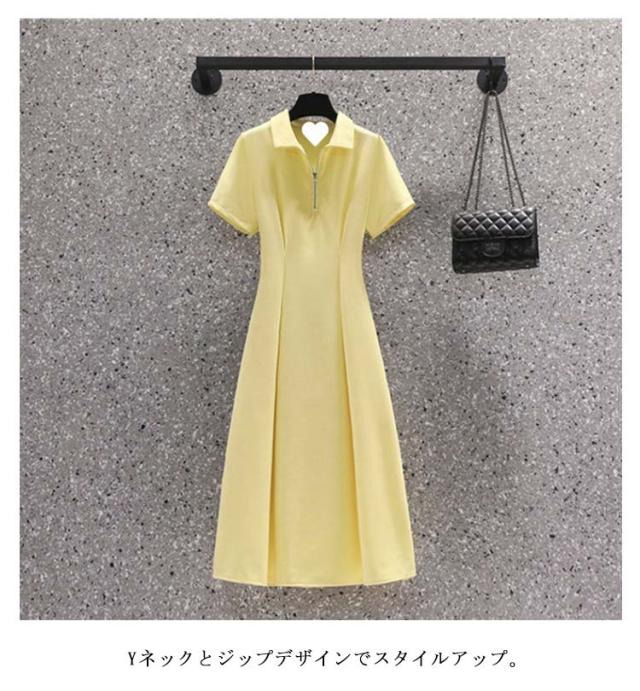レディース ワンピース ワンピース ロングワンピース タック ハーフジップ ワンピース 半袖 ロング ウエストタック ショートスリーブ きれいめ カジュアル キーネック Yネック 着痩せ 無地 春夏