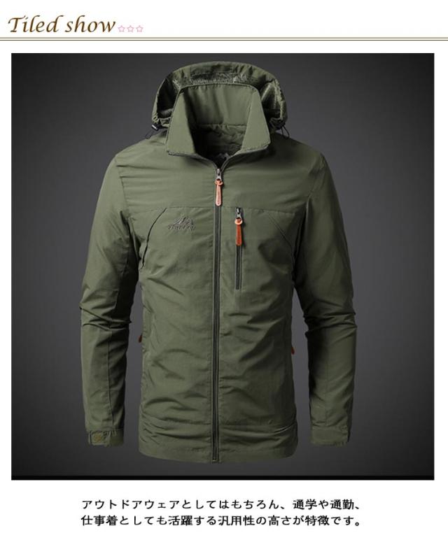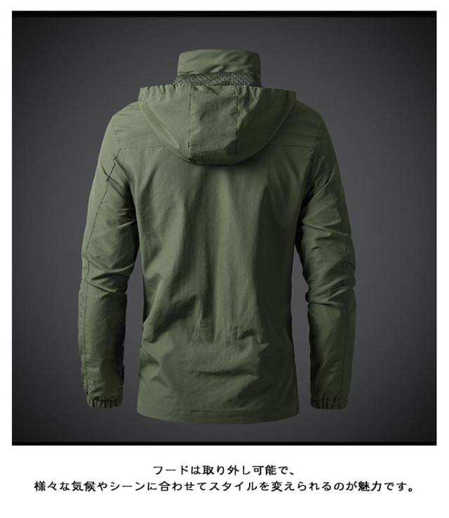 メンズ 登山 マウンテンパーカー 春 通学 アウトドアウェア 薄手 ジャンパー アウター ウィンドブレーカー 撥水 ウェア フード取り外し可 マウンテンジャケット 春服 マウンテンパーカー 通勤 アウトドア 仕事着