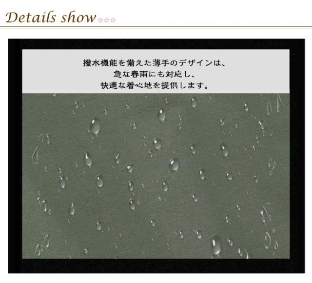 | 撥水機能を備えた薄手のデザインは、急な春雨にも対応し、快適な着心地を提供します。 アウトドアウェアとしてはもちろん、通学や通勤、仕事着としても活躍する汎用性の高さが特徴です。 フードは取り外し可能で、様々な気候やシーンに合わせてスタイルを変えられるのが魅力です。 5色のバリエーションから選べるため、お好みのスタイルを選ぶことができます。 | |