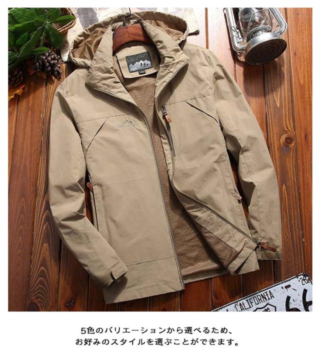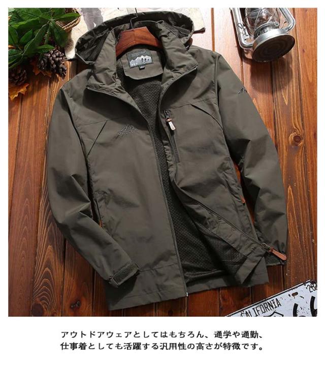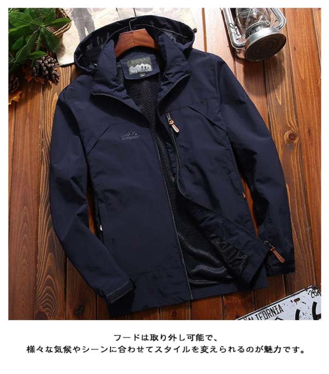 登山 アウトドアウェア アウター マウンテンパーカー ジャンパー ウェア 薄手 撥水 メンズ ウィンドブレーカー 春 メンズ フード取り外し可 マウンテンジャケット 春服 通学 通勤 アウトドア 仕事着