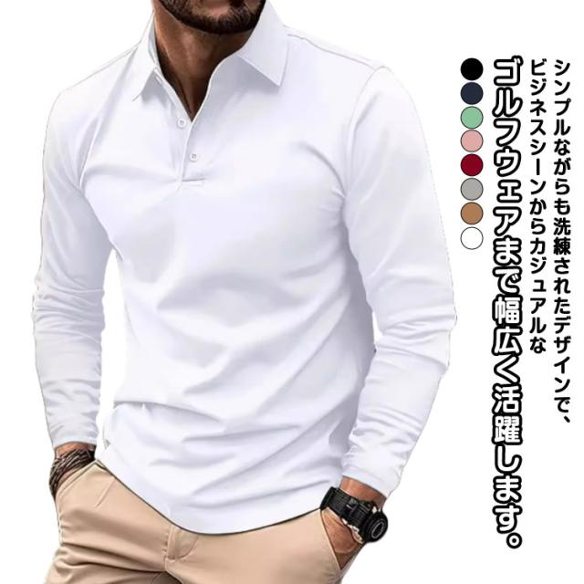 ゴルフウェア ポロシャツ 通勤 ビジネス トップス メンズ ゴルフ Poloシャツ ポロシャツ 無地ポロシャツ 長袖ポロ メンズポロシャツ 紳士服 春 秋