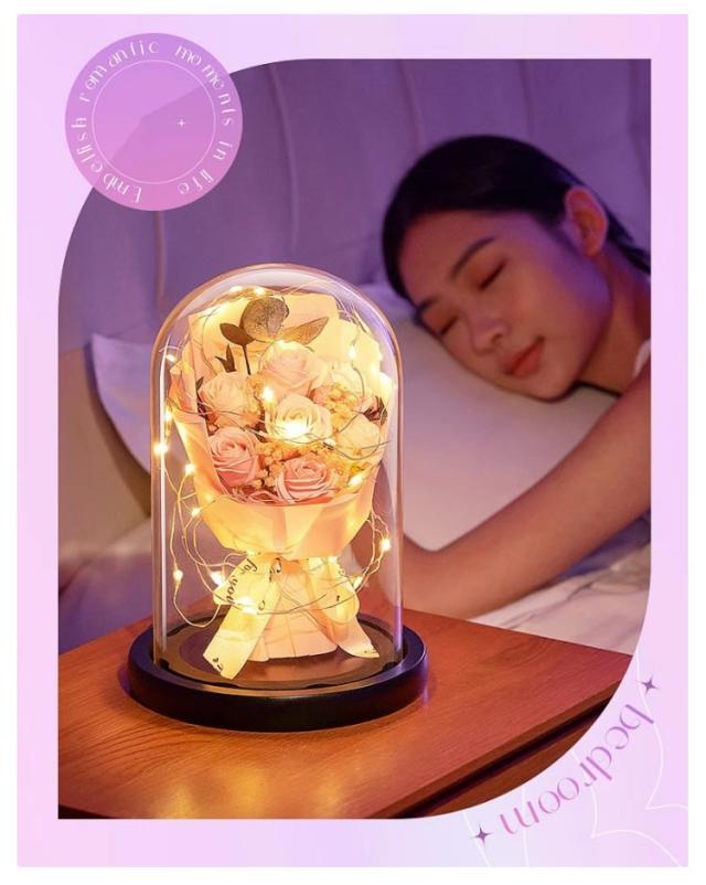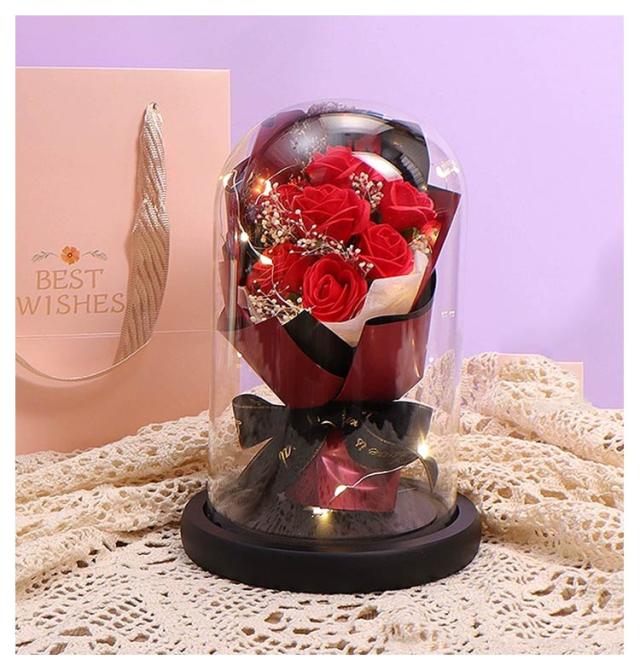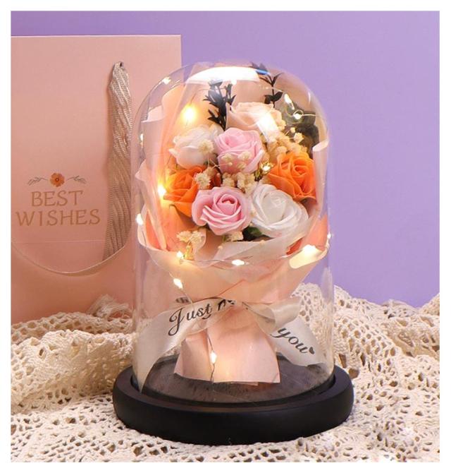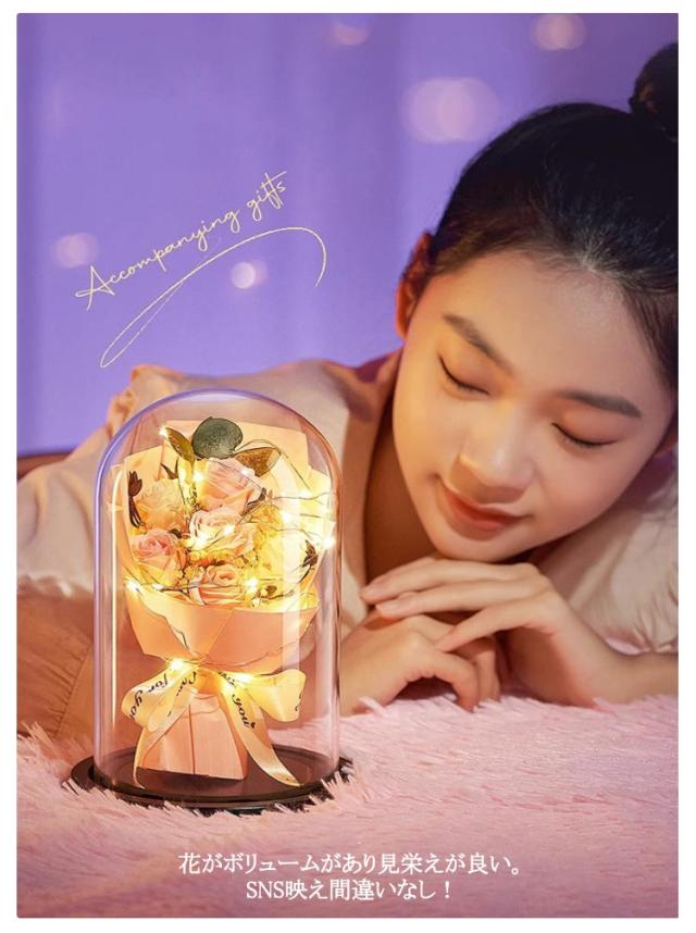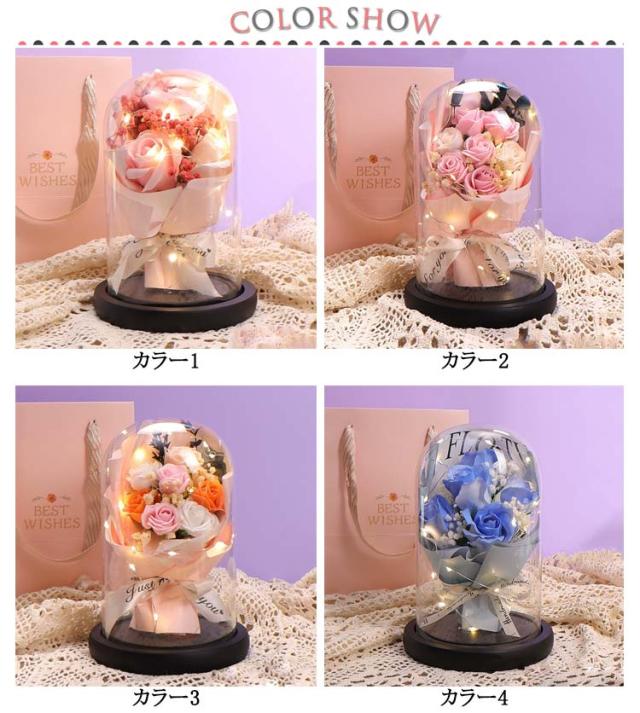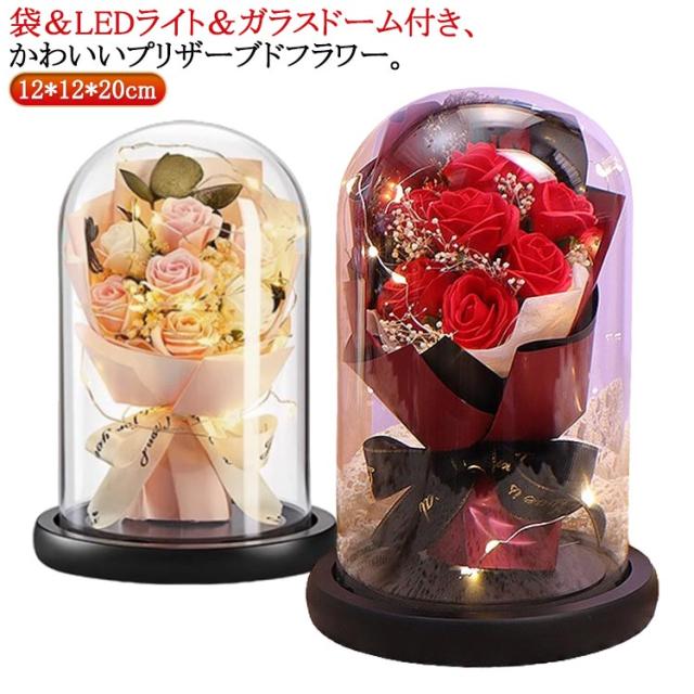 プレゼント 母の日 結婚祝い プリザーブド フラワー 誕生日 ブーケ ソープフラワー お祝い 花 花 ギフト 母の日 ライト付き 結婚記念日 ホワイトデー 卒業祝い 歓迎 ガラスドーム 送別会 出産祝い 引越し祝い 新築祝い 女性 袋付き