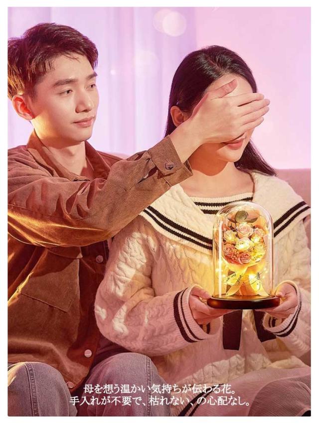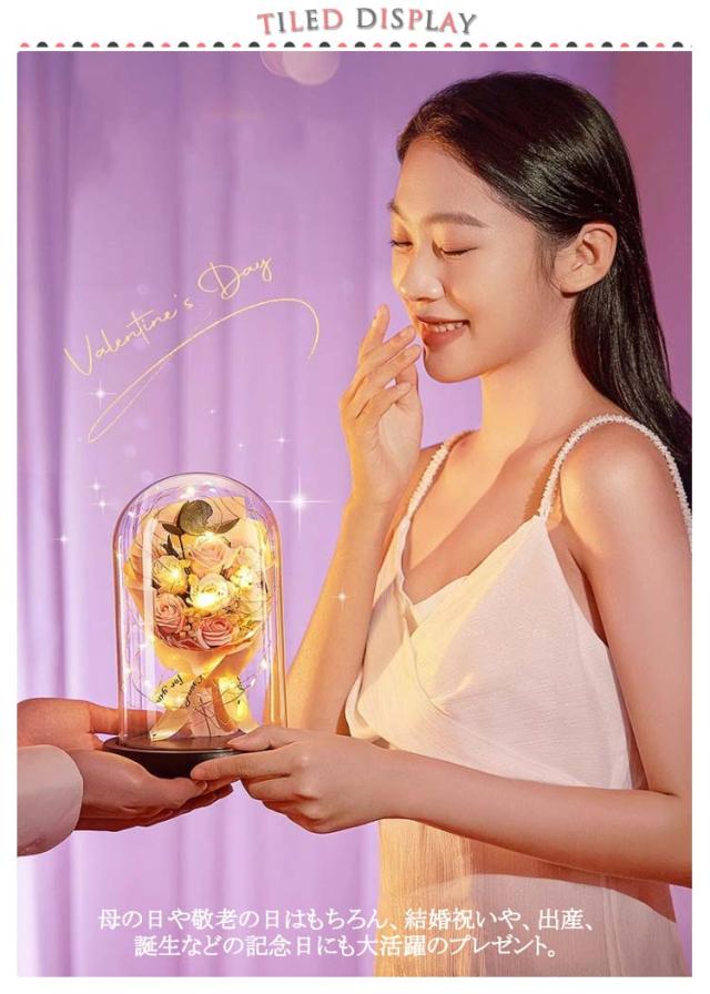 | 袋&LEDライト&ガラスドーム付き、かわいいプリザーブドフラワー。 母の日や敬老の日はもちろん、結婚祝いや、出産、誕生などの記念日にも大活躍のプレゼント。 存在感抜群のLEDライト付き、美しくより華やかに雰囲気を演出してくれます。 花がボリュームがあり見栄えが良い。SNS映え間違いなし! 母を想う温かい気持ちが伝わる花。手入れが不要で、枯れない、の心配なし。 | |