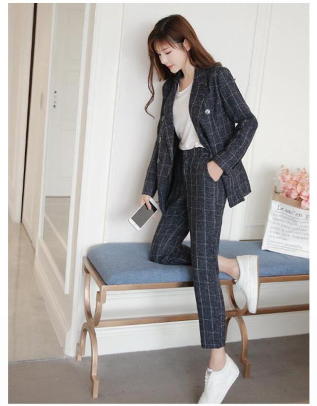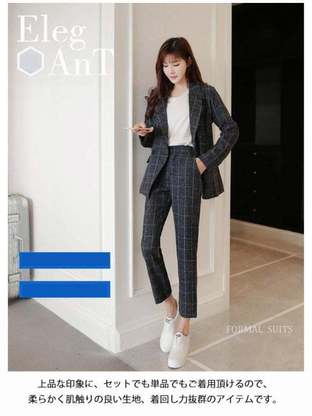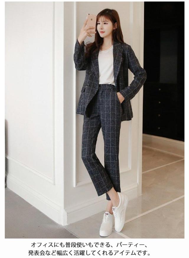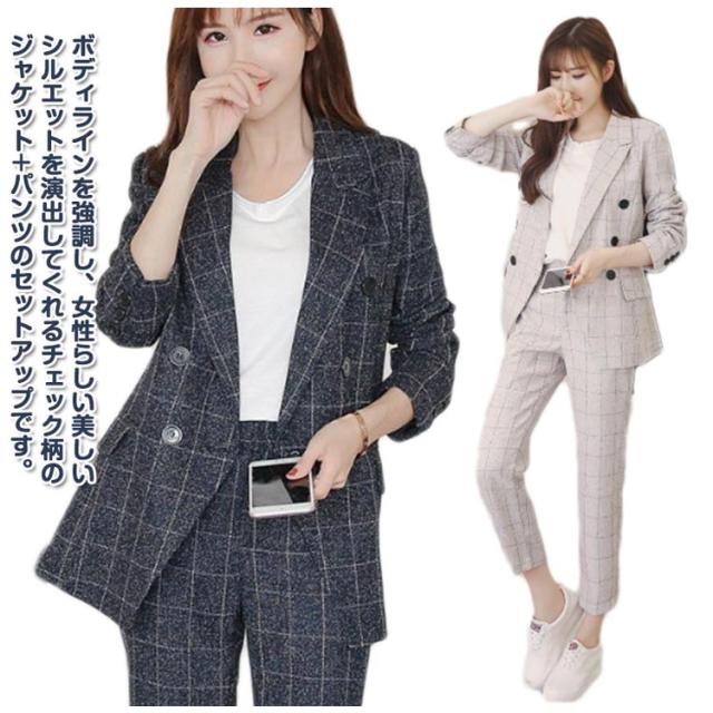 チェック柄 パンツスーツ セットアップ 卒業式 リクルートスーツ ビジネス スーツ セレモニースーツ ジャケット 洗える 女性スーツ ネイビー 入学式 オールシーズン フォーマルスーツ OL 通勤 レディース グレー チェック柄 S M L