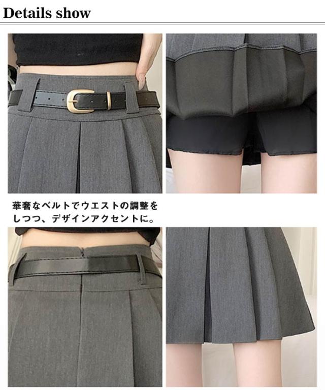 着痩せ ミニスカート 膝上丈 ショート丈 美脚 プリーツミニスカート フレアスカート レディース Aライン ハイウエスト ベルト付き 裏地付き 無地 カジュアル 発表会 ダンス インナーパンツ付き プリーツミニスカート 通勤 文化祭 韓国風 春夏