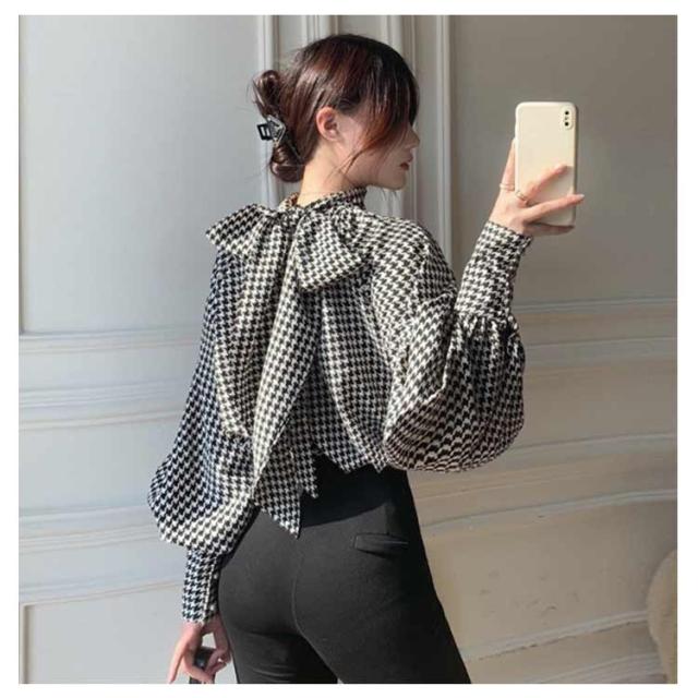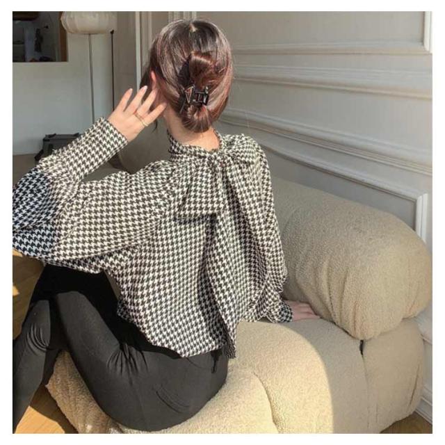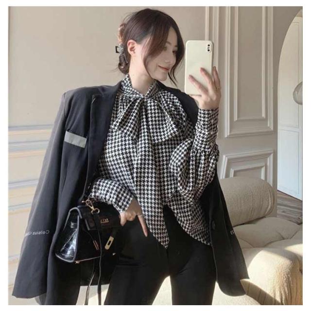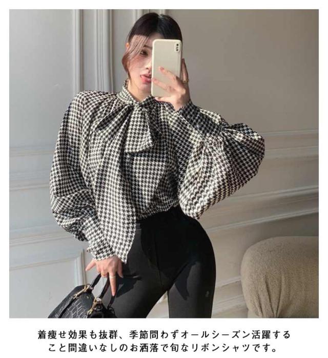 おしゃれ 千鳥柄 千鳥柄 レディース 長袖 デート ブラウス 可愛い 着痩せ エレガント 上品 ボウタイブラウス パフスリーブ ゆる感 シャツ 着回し力 普段着 トップス 通勤 女性らしい 秋 冬 結婚式 入園式