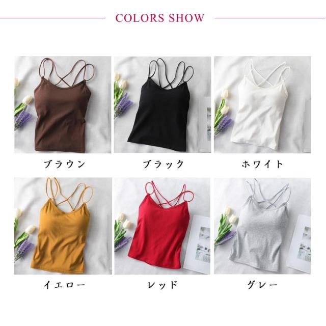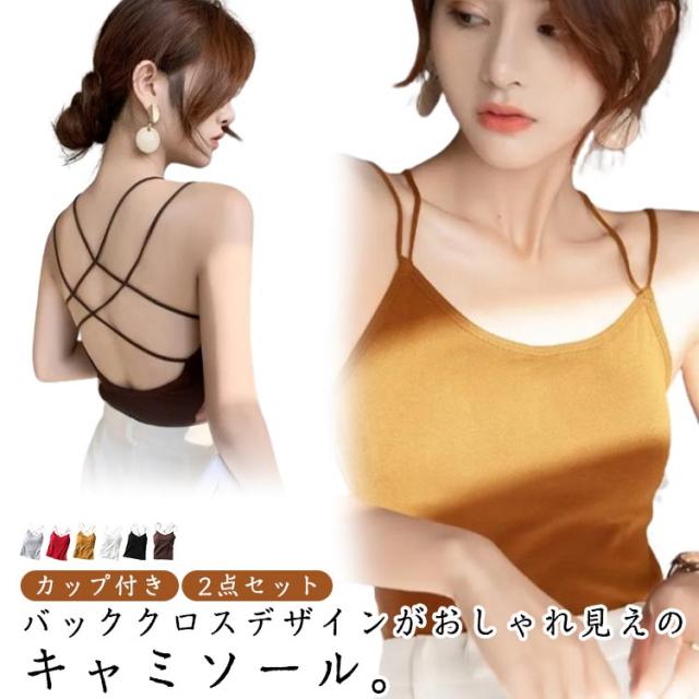 ブラキャミ キャミソール レディース カップ付き カップ付き ブラトップ インナー バッククロス バックオープン ダブルストラップ 下着 春 夏 パッド付き タンクトップ セット ブラキャミソール 通気性 透けない 蒸れない ストレッチ ノーワイヤー 大人可愛い 【送無】